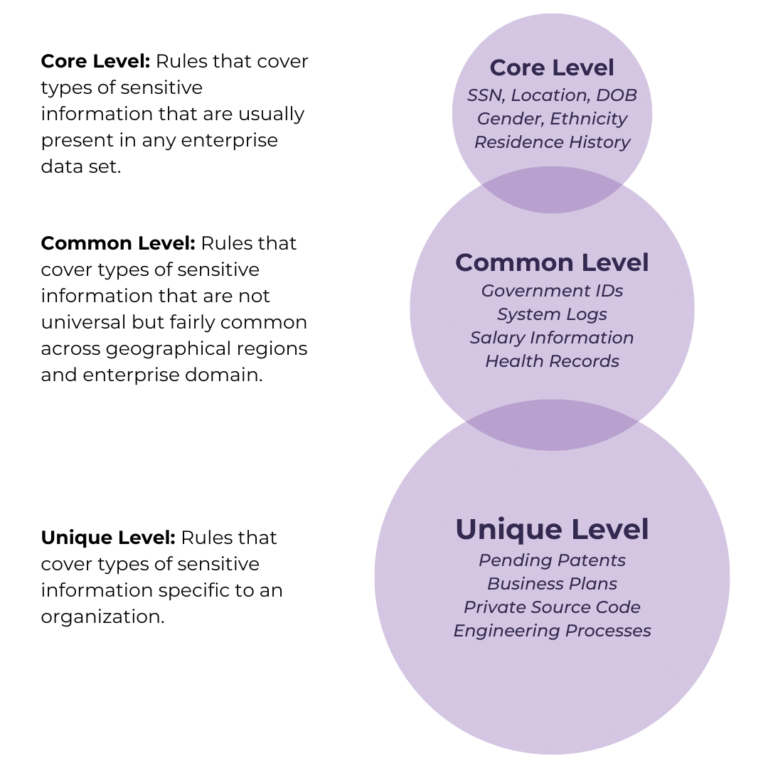 - Core Level: Includes fundamental organizational knowledge and critical business rules, defined with input from domain SMEs.
